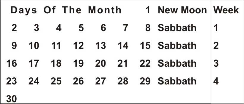 Anciently, the Jews who followed God’s calendar waited to observe the first crescent of the moon and the day following that sighting (day two) was New Moon day. If no moon appeared either day or night after the end of its seen circle, then it was regarded as the rebuilding of the new moon. If the moon crescent was seen in the western sky in the evening following the 29th day of the month (fourth monthly Sabbath), a new month thus begun. If not, another day was added so that the particular month had 30 days. A month never had more than 30 days. The new moon is not part of the week, but of the month. Once a month they would have what we would term today as a “long weekend”, and in a 29-day month the fourth and last Sabbath would be followed by a New Moon day which would be an added to the first six days. The new moon days are mentioned in several chapters and verses of our scriptures but are separated from the Sabbath and work days (read Isaiah 66:23, Amos 8-5 and Kings 4:23).